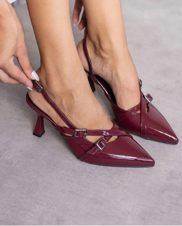 کفش مجلسی ورنی زنانه پاشنه ۷سانت زرشکی