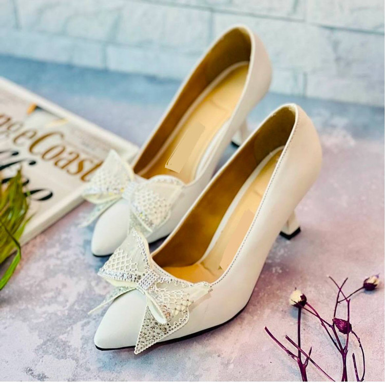 کفش پاپیونی عروس پاشنه ۵و۷ سانت