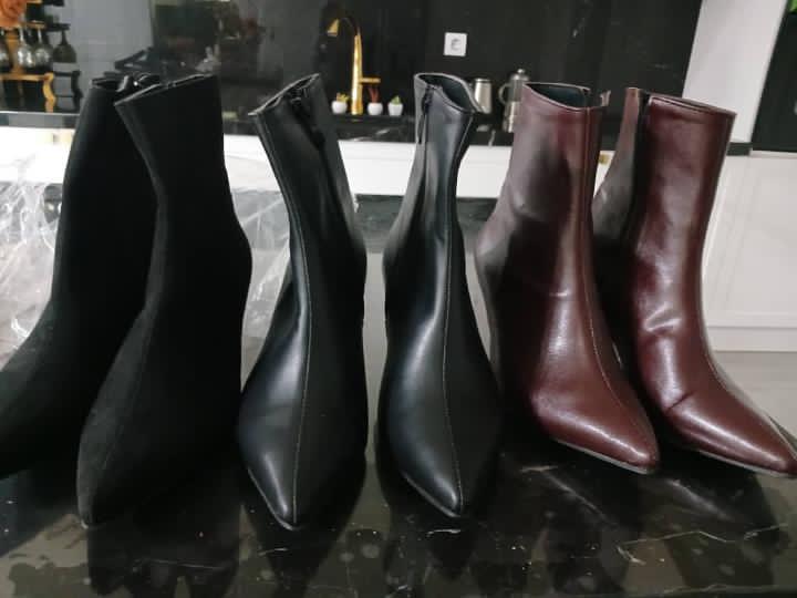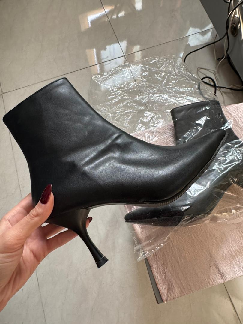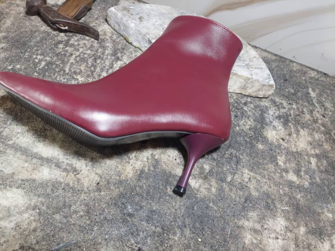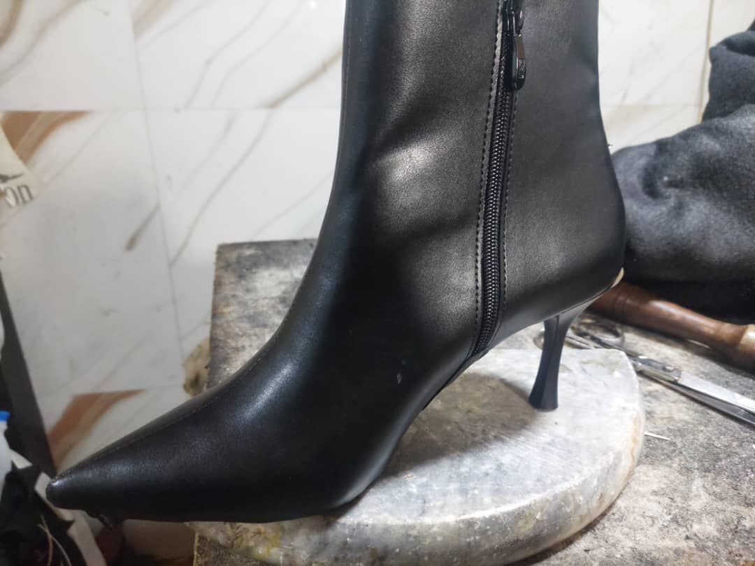 نیم بوت زنانه چرم پاشنه۷سانت نوک تیز