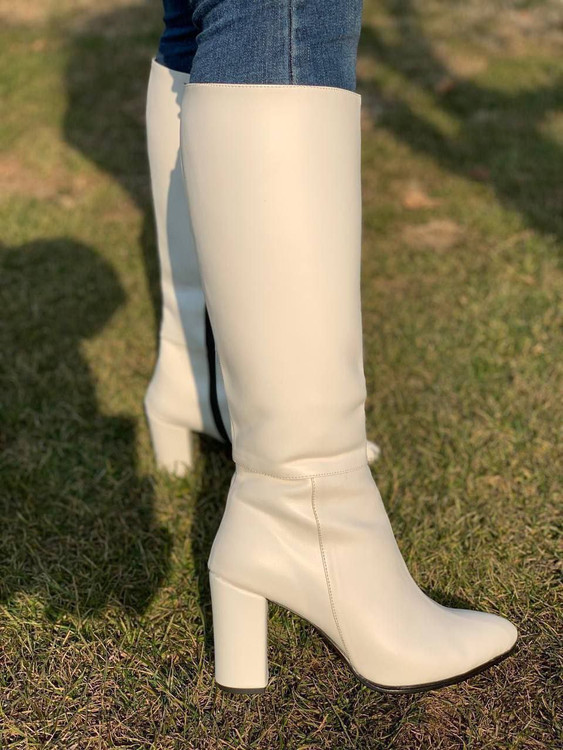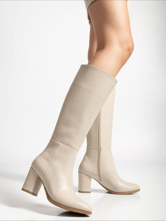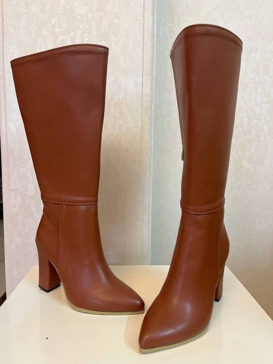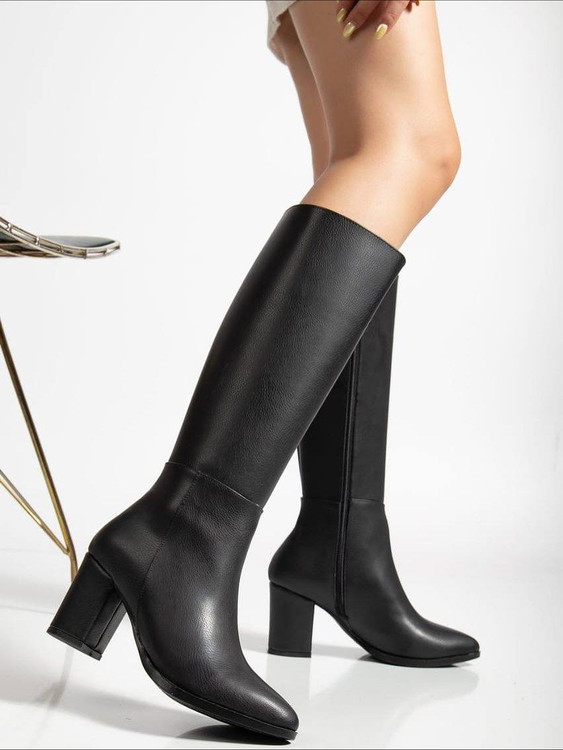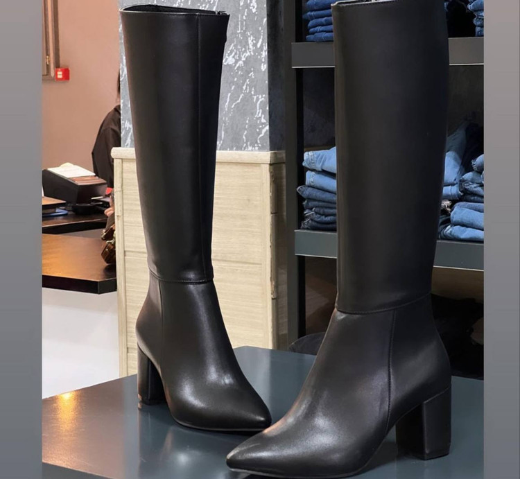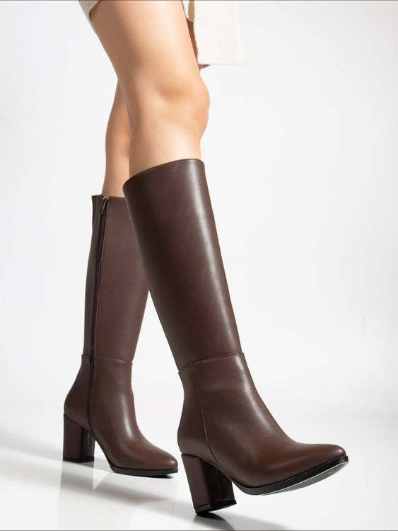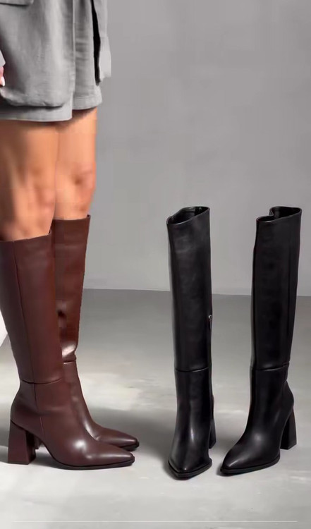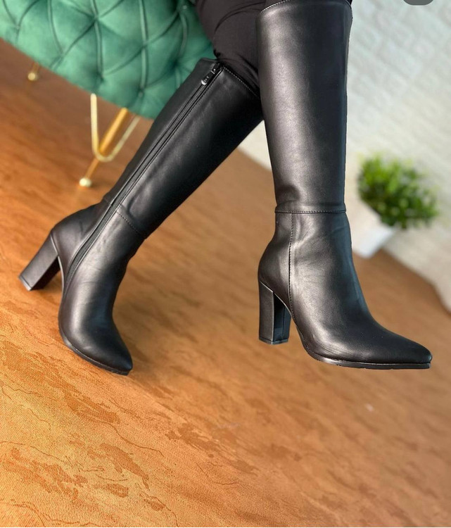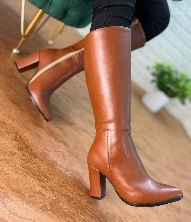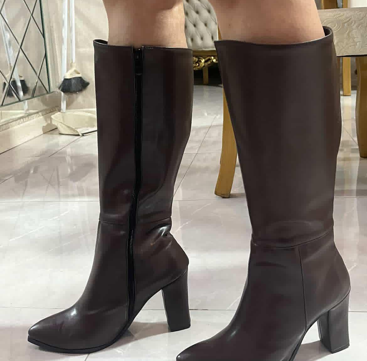 بوت بلند چرم زنانه زیپدار پاشنه ۵و ۷ سانت