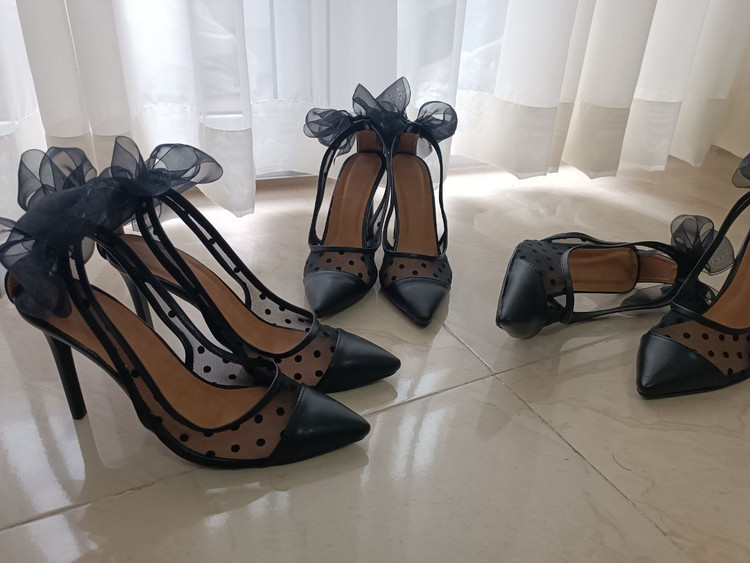 کفش مجلسی زنانه پاشنه بلند توری خالخالی